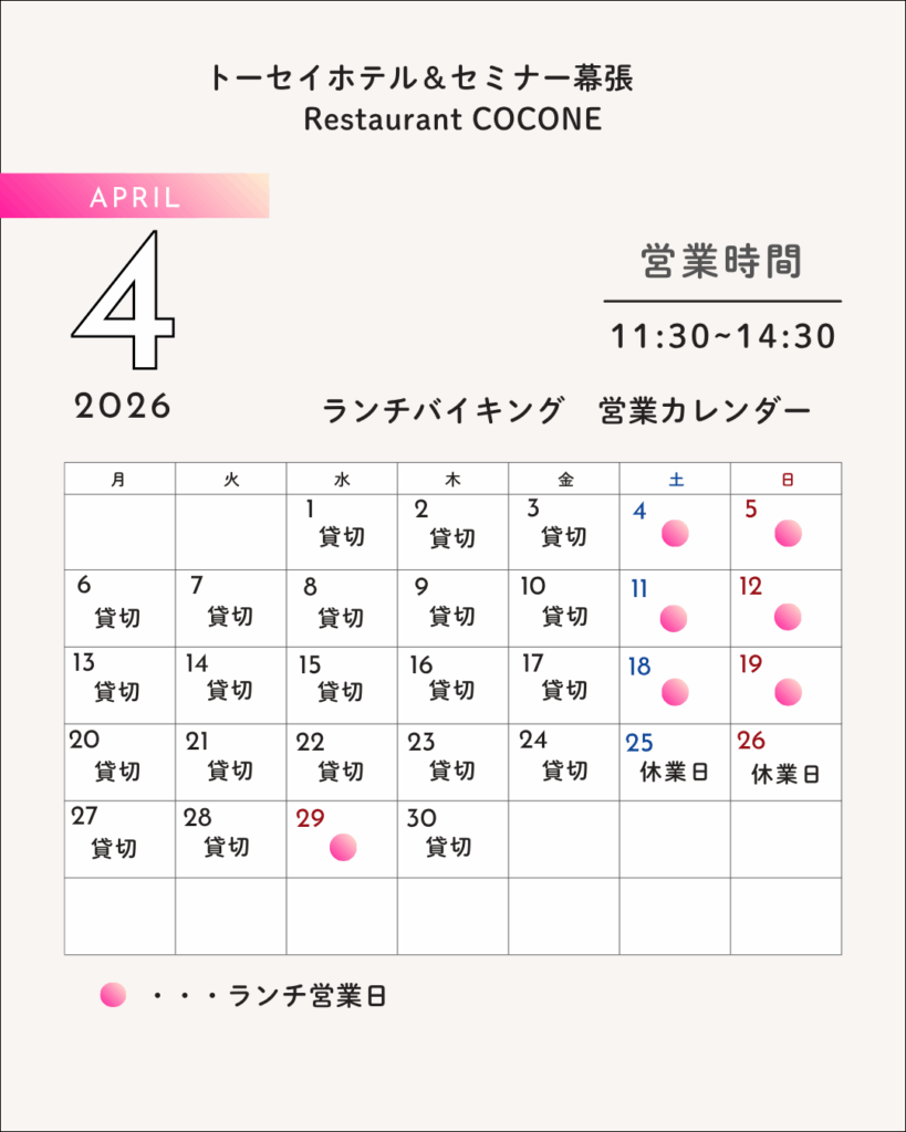 4月ランチバイキング 営業日のお知らせ